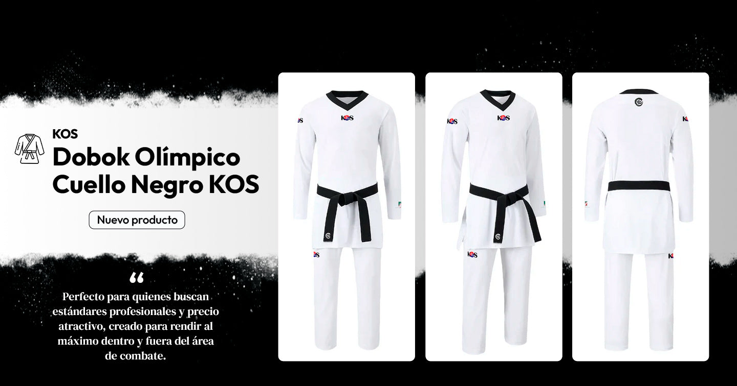 Experimenta la máxima comodidad y movilidad con nuestro Dobok de Taekwondo con cuello negro de Tela Mesh, extra ligera y anti-sudor. Ver producto